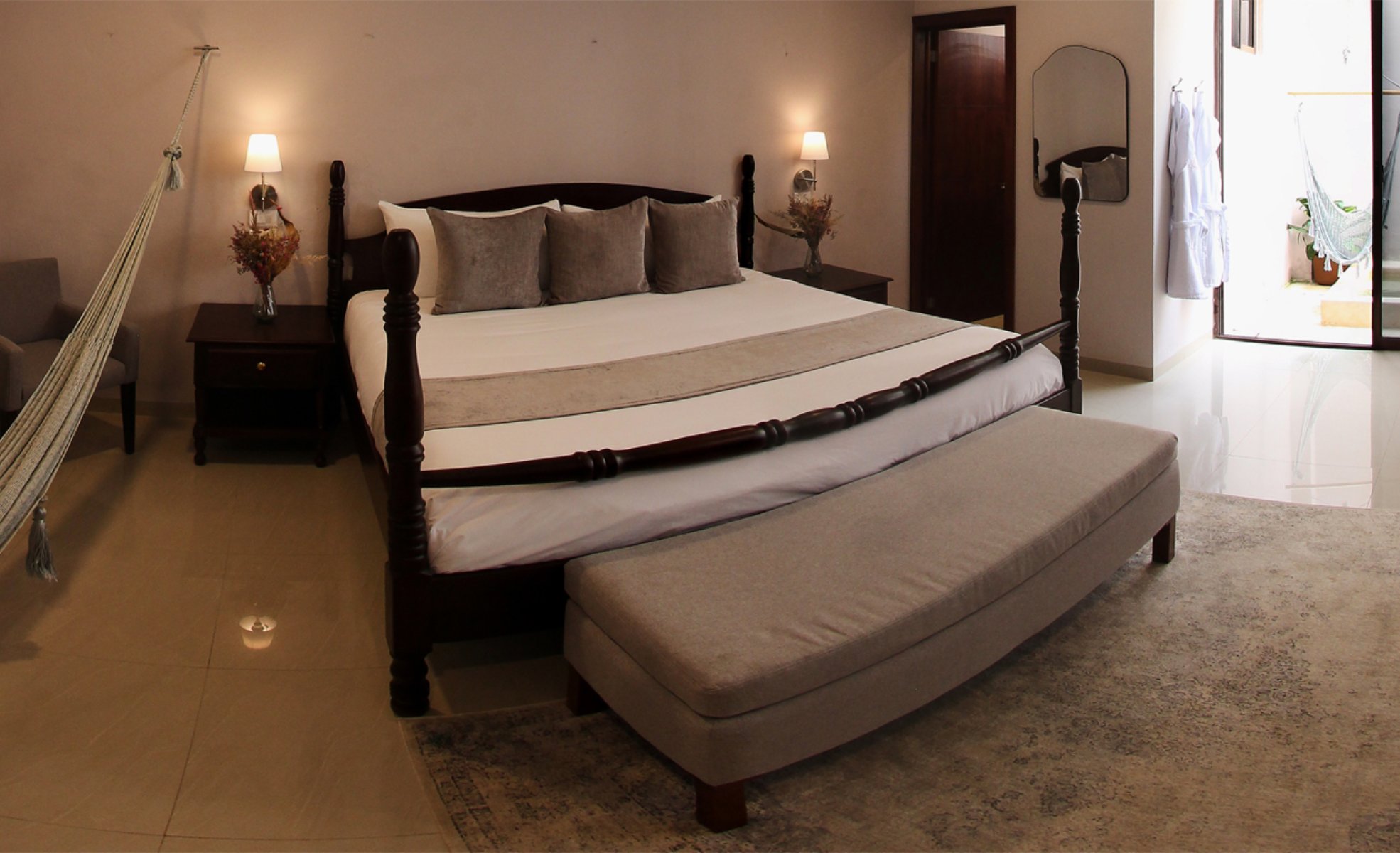 The Classic Suite, with an exclusive design and refined touch, features a separate room for added privacy. Covering 30 m², it is located on the ground floor of the colonial building, blending with its historic essence and offering an elegant, welcoming atmosphere.